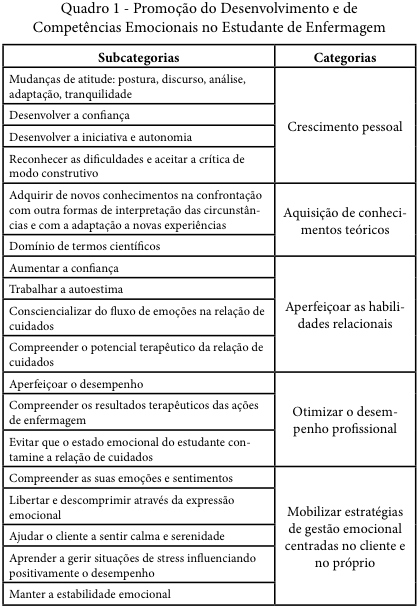 Assim sendo, a formação em enfermagem não se deve confinar ao processo técnico e científico, mas também sublinhar o desenvolvimento pessoal do estudante pelo papel gerador que tem em todas as competências (Rabiais 2010, p. 36), ou seja, não é possível separar as dimensões cognitivas, sociais, afetivas e emocionais quando se pretende clarificar os fatores que estão na base do desenvolvimento da aprendizagem do Cuidar de Enfermagem. Também as emoções são, então, uma dimensão essencial não só para o enfermeiro mas também para o estudante, que procura o sucesso muitas vezes num emaranhado turbulento de experiências, pensamentos e emoções que precisa de aprender a gerir.
