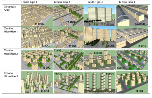 A elevada densidade construtiva pode corresponder a diferentes padrões de ocupação de solo e de morfologia urbana, os quais são importantes fatores de análise de microclimas de ambientes urbanos. No cenário brasileiro, estes padrões morfológicos e de densidades podem ser resultantes do estabelecimento dos tradicionais parâmetros urbanísticos nas legislações municipais relacionadas ao processo de planejamento urbano (taxa de ocupação, coeficiente de aproveitamento, gabaritos). Por isso, o estudo sobre tipos e quantificação dos parâmetros urbanísticos pode favorecer a identificação de diretrizes para otimização da qualidade ambiental urbana. Assim, a análise do grau de correlação entre os padrões de ocupação do solo (parâmetros urbanísticos) e as variáveis climáticas (temperatura do ar, umidade relativa e velocidade dos ventos) podem subsidiar, também, a estimativa das alterações nas variáveis climáticas em cenários futuros.