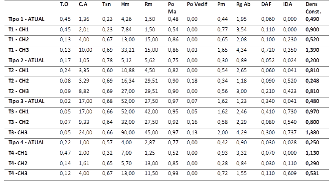 Tabela 8: Valores dos parâmetros urbanísticos quantificados para caracterização dos cenários