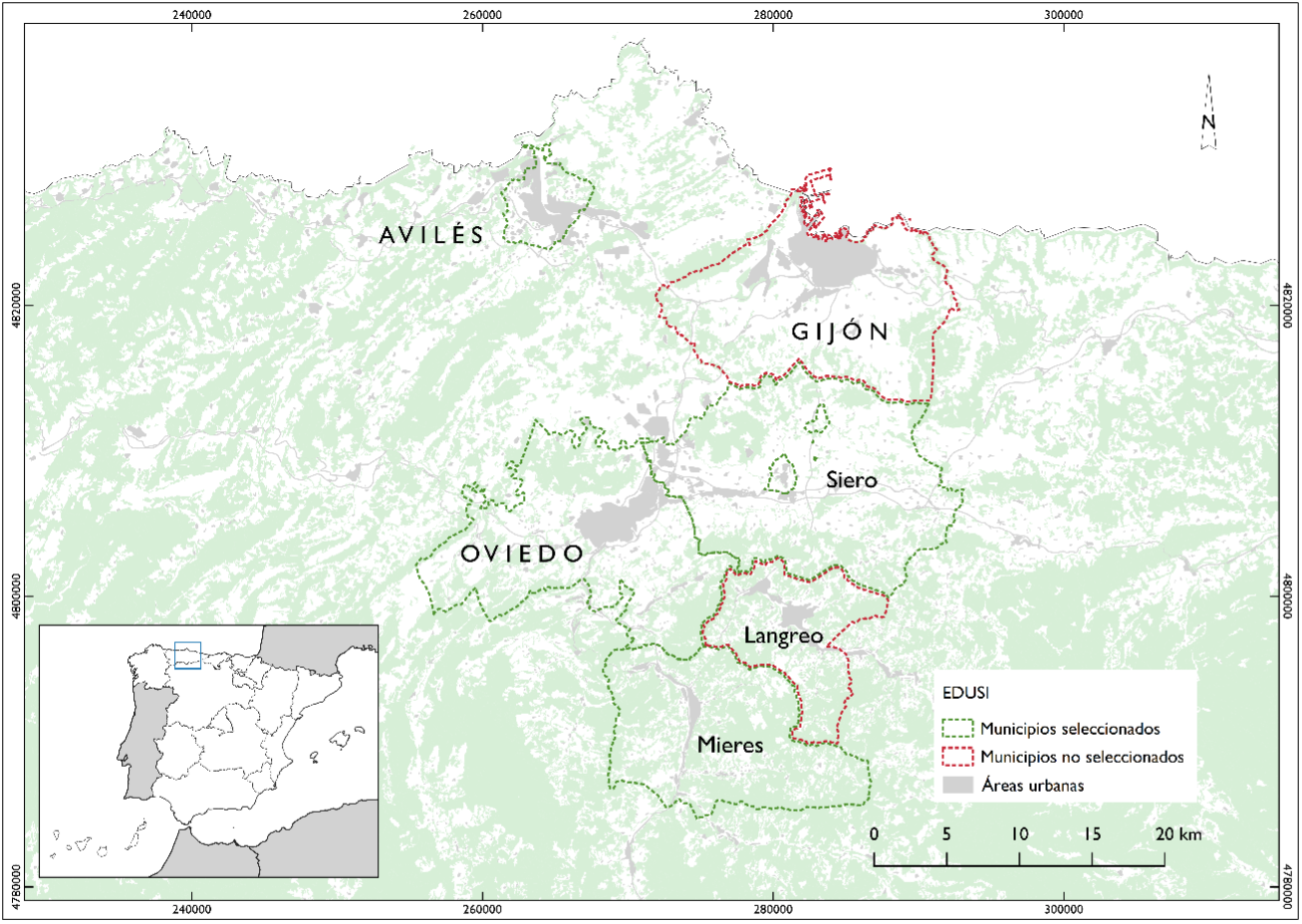 La incorporación de España a la UE en 1986 conllevó la aplicación de políticas urbanas comunitarias en las ciudades españolas. Entre ellas, las ciudades asturianas han ido accediendo en las últimas décadas a programas de cofinanciación en diferentes convocatorias, especialmente en el último periodo 2014-2020, en el que cuatro municipios asturianos han sido seleccionados por sus EDUSI. Avilés, Mieres, Oviedo y Siero han incluido en sus documentos estratégicos los principios del desarrollo urbano sostenible integrado y han presentado una serie de líneas de actuación consecuentes con los objetivos temáticos europeos.