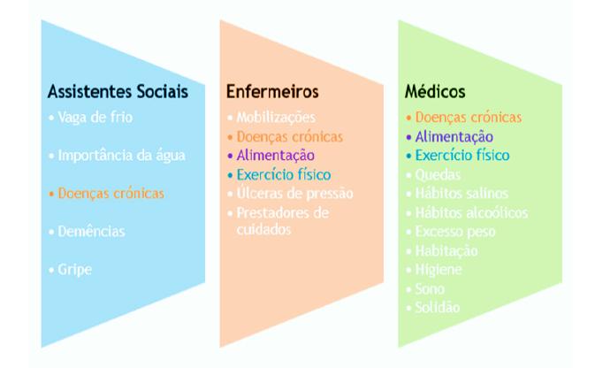 Os profissionais têm em conta as condições e o meio envolvente dos idosos, sendo de valorizar a promoção de um comportamento dirigido para o envelhecimento ativo, contudo não demonstraram articulação entre os grupos profissionais.