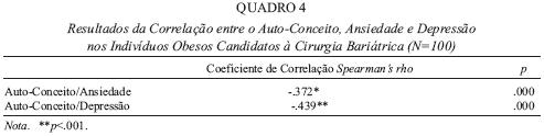 Key-words: Anxiety, Bariatric surgery, Depression, Morbid obesity, Self-concept.