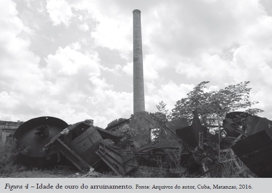 Aproximar o olhar desse espaço-tempo do açúcar possibilita compreender, etnograficamente, as ansiedades, espacialidades e temporalidades que estão em jogo nas experiências pessoais de falência das usinas e, em consequência, dos bateyes. Como ficará evidente, o roteiro descritivo e analítico aqui criado modula a escala para obter imagens distintas (mas igualmente complexas) do tema das ruínas açucareiras em Cuba. A modulação se dá entre fatos históricos e políticos mais amplos e eventos corriqueiros (e críticos) de diversas práticas da vida cotidiana: um entre que, às vezes, se transforma em mescla, isto porque, em seus relatos, as pessoas misturam, com ressignificações e reapropriações, macro e microeventos para explicitar as marcas tangíveis de passados, conflitos e negociações nelas deixadas. É com um elemento de apreciação e conjunção histórica específica que inicio o exame da “reestruturação” ou “desmantelamento” dos centrais.