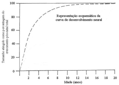 Conforme exposto na Figura 1, a curva neural apresenta uma evolução (dimensional e funcional) extremamente rápida no início da vida, de modo que por volta dos três anos de idade o cérebro e as estruturas relacionadas já atingiram aproximadamente 70% do seu tamanho na idade adulta.
