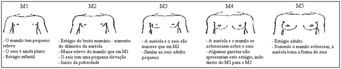 Figura 5. Estágios de desenvolvimento de seios (a avaliação pode ser feita por um médico ou por meio da autoavaliação; adaptado de Morris & Udry, 1980)