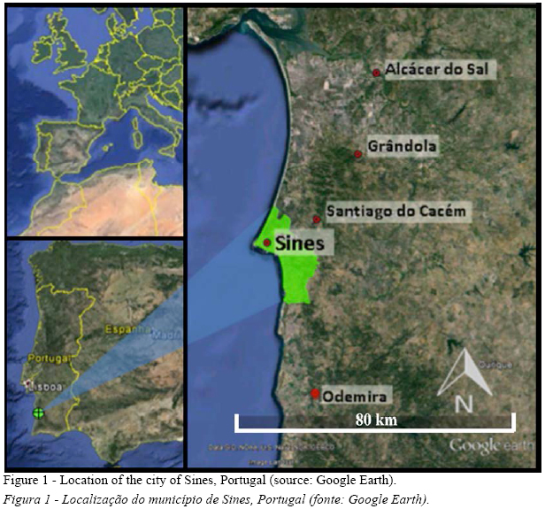 The municipality of Sines includes the parishes of Sines and Porto Covo and is located in the coastal area of Alentejo, district of Setúbal, occupying an area of 202.7 sq. Km. In 2011 it had a population of 14,238 inhabitants and 5,621 family households (INE, 2014). Although it is traditionally associated with maritime activities, agriculture also plays a significant role in the traditions and culture of the Sines (Soledade, 1999).