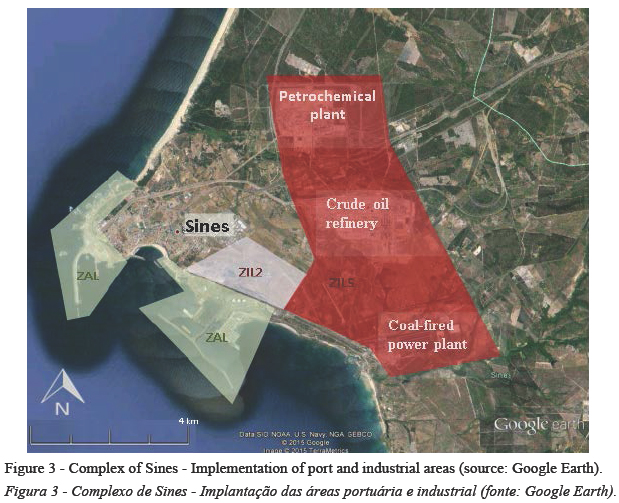 The harbour and industrial complex in Sines presently occupies an area of over 3,000 ha, hemming the urban area (figure 3). It includes a petrochemical plant, a crude oil refinery and a coalfired power plant.