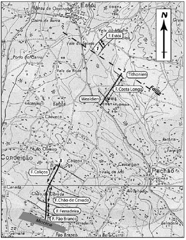 – Location of the lithostratigraphic units in the reference sections in the country of Estói, Conceição and Pechão.