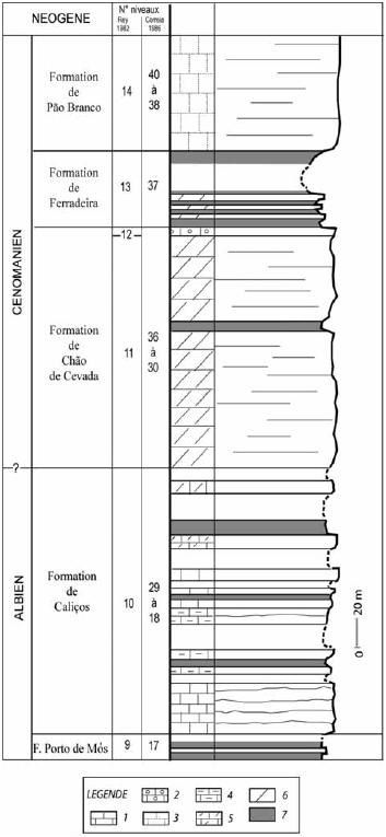 Les Formations de Burgau (Aptien inférieur), de Luz (Aptien inférieur à supérieur) et de Porto de Mós (Aptien terminal-Albien) dont les coupes de référence ont été établies en Algarve oriental (REY, 2006) se présentent sous les mêmes faciès dans l’Algarve occidental. Elles ne seront donc pas reprises dans ce travail.