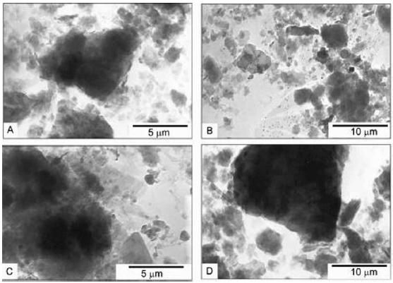 des particules de smectites à structures floconneuses et contours diffus (photo C),