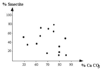 Fig. 3 Relations teneur en carbonate de calcium en fonction de la teneur en smectite de la zone minéralogique II dEssaouira.