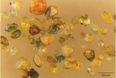 Fig. 2 – Xenotime grains (100%) from alluvial samples from the Vila Velha de Ródão area.