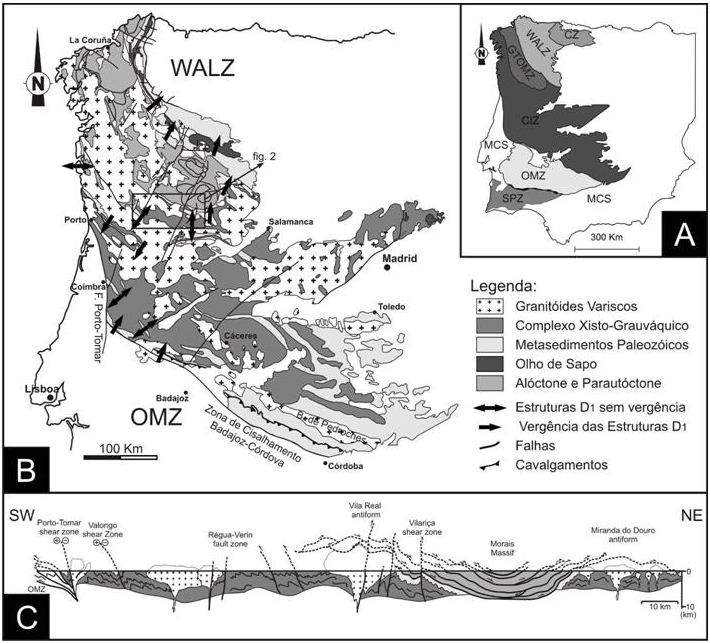O Maciço Ibérico tem-se revelado de grande importância para a compreensão da evolução geodinâmica da Cadeia Varisca (Fig. 1A).