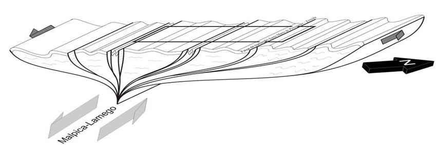 Dias, R. & Ribeiro, A. (1994) – Constriction in a transpressive regime: an example in the Iberian branche of the Ibero-Armorican Arc. Journal Structural Geology 16/11, 1545-1554.