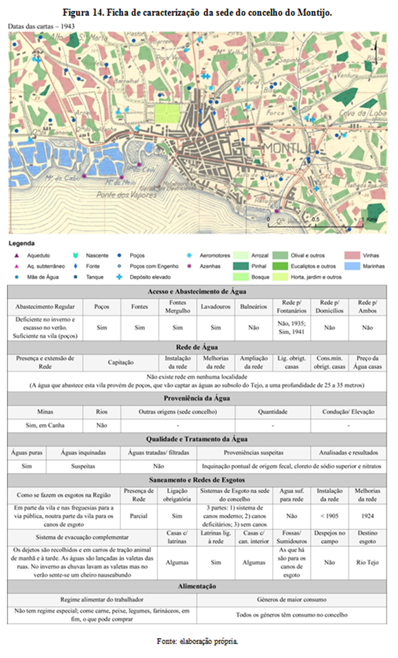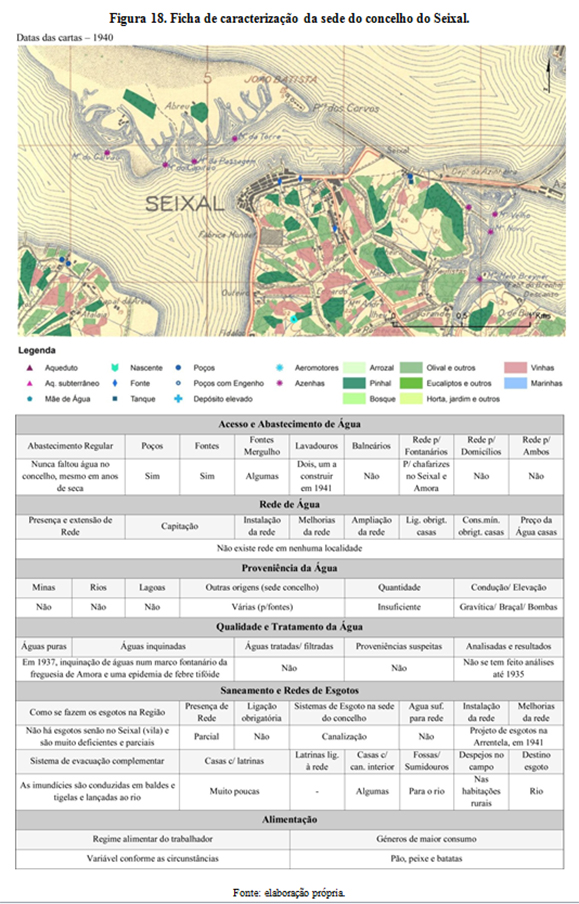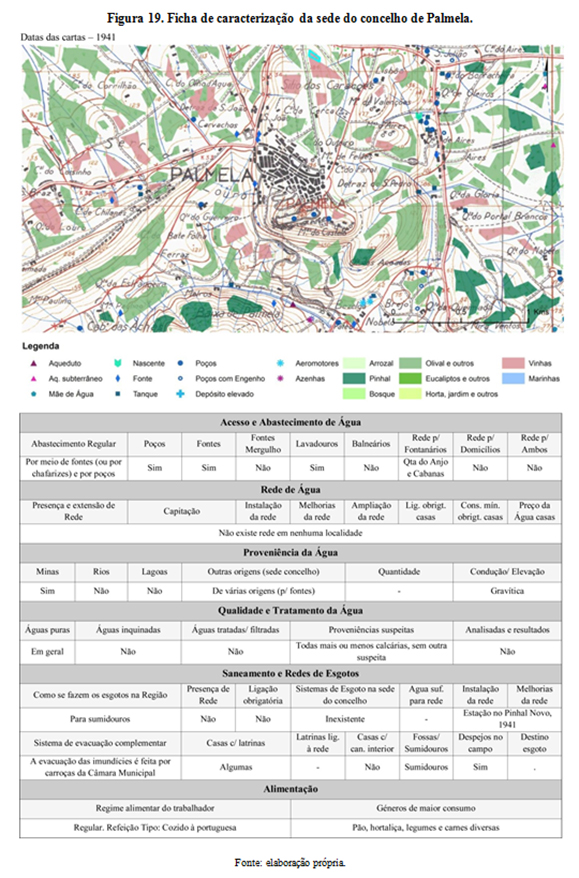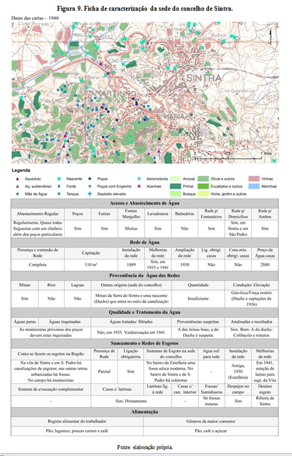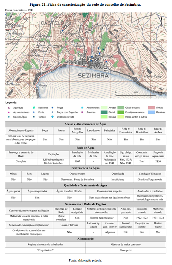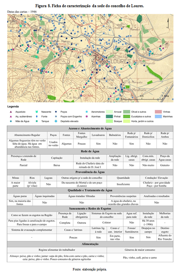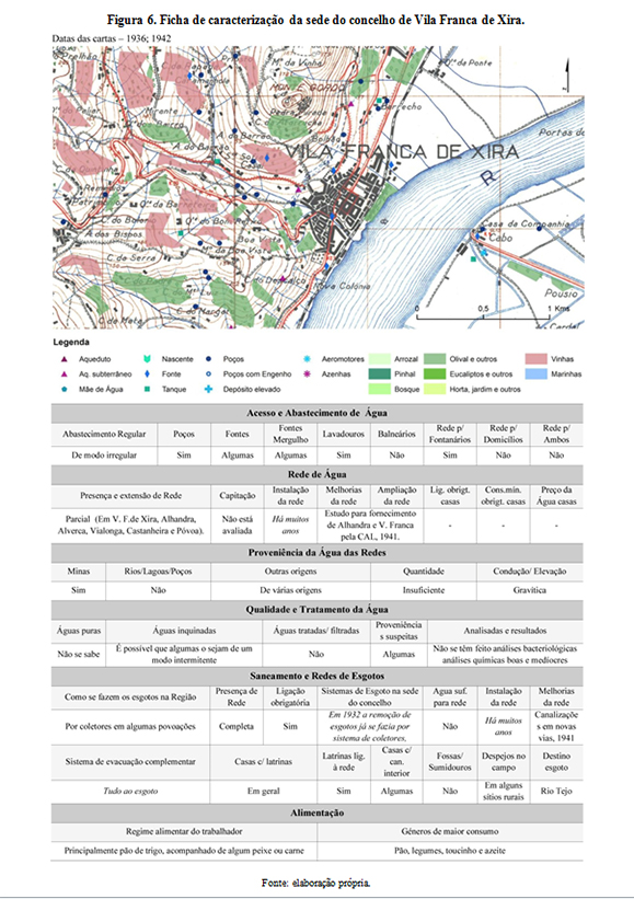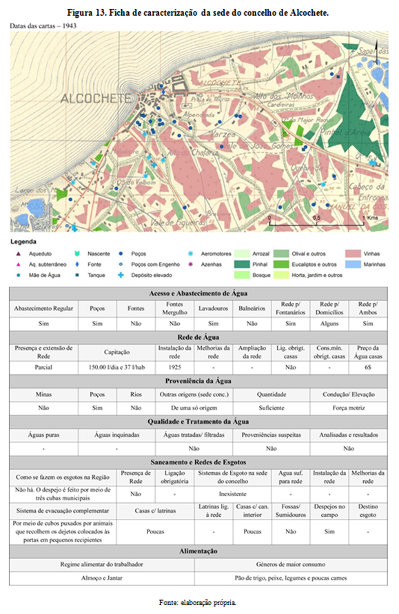 Apresenta-se de seguida a síntese da caracterização sobre Abastecimento de Água e Saneamento e Alimentação e Cultivos para as dezasseis sedes de concelho da Região de Lisboa em cerca de 1940, com informação proveniente das fontes identificadas.