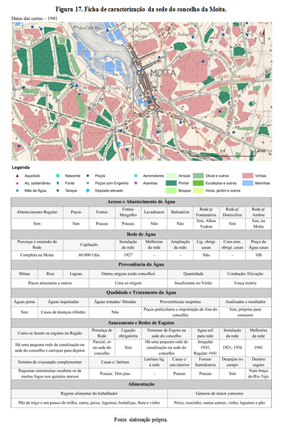 Apresentam-se em seguida as fichas de caracterização realizadas para cada uma das dezasseis sedes de concelho em 1940. Cada uma destas fichas inclui os resultados obtidos a partir da aplicação das duas metodologias descritas (figuras 6 a 21).