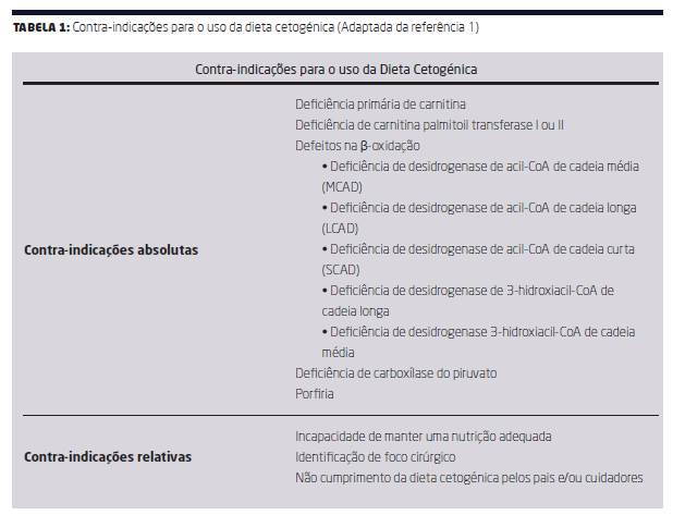 principal fonte de energia provém dos lípidos e, por essa razão, o doente não poderá ter qualquer patologia relacionada com o transporte ou com a oxidação dos ácidos gordos. Este tratamento também está contra-indicado na deficiência de carboxílase do piruvato e em porfirias (1).