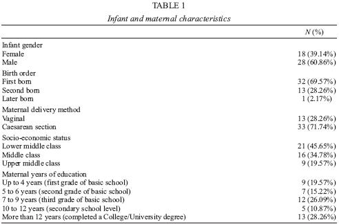 Compared to other samples collected in Western countries, in our study maternal formal education was quite low. Nevertheless, according to the last national census, the sample values are roughly similar to Portuguese indices for women education (INE, 2004).