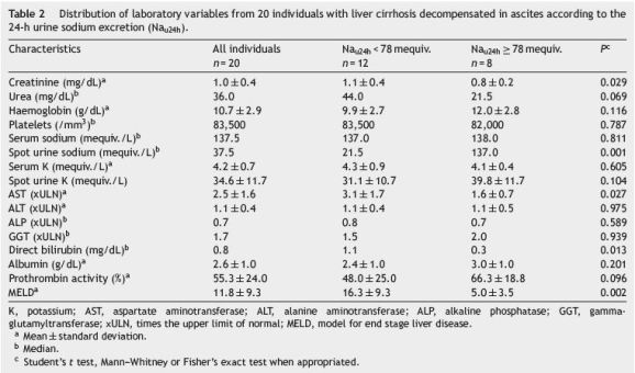 Keywords: Liver cirrhosis; Ascites; Sodium; Urine; End stage liver disease