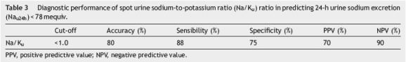 Performance of the Na/Ku ratio in predicting 24 h urinary sodium excretion