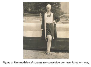 A exibição de si através de uma moda chic dissimulada na exibição do conforto funcional de um vestuário naturalmente adaptado ao corpo tornou-se um traço dominante das Maisons dos anos vinte. Tal como Chanel, também a casa Patou lançou colecções de inspiração desportiva, sportswear, queigualmente se tornaram sinónimo de distinção chic (cf. figura 2). A associação entre distinção efuncionalidade foi sublinhada pelo próprio Jean Patou: